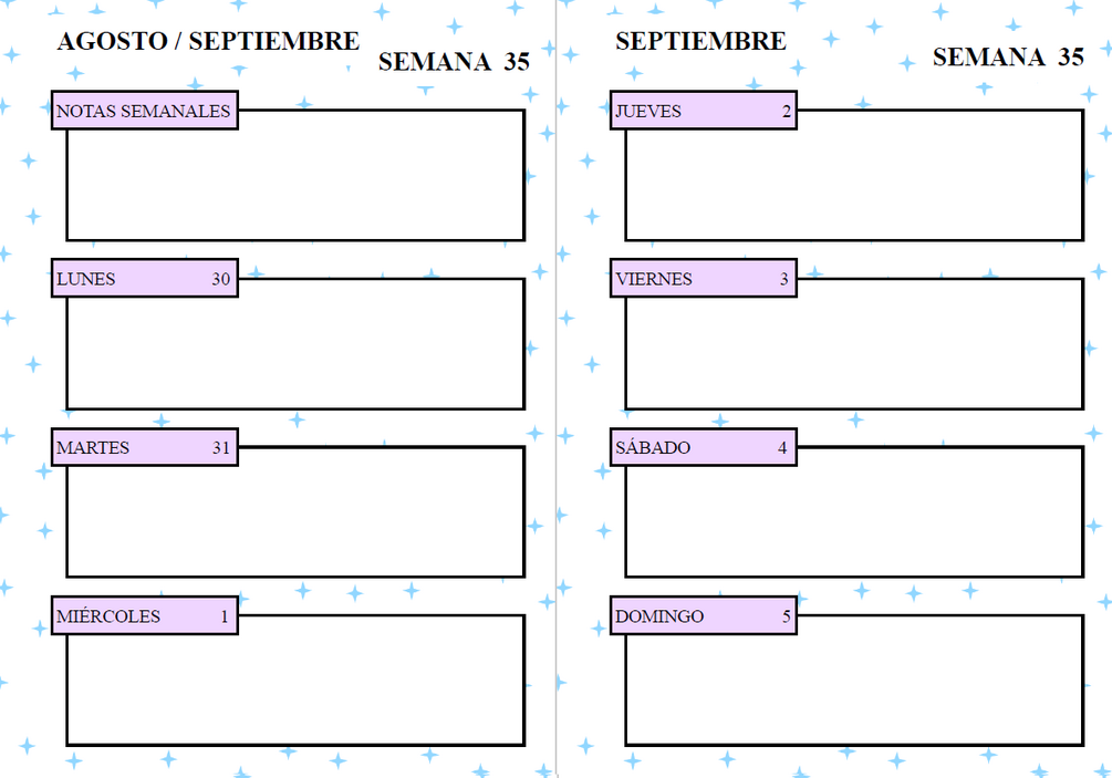 Agenda universitaria organizada a día vista y dividida en los 2 cuatrimestres universitarios. Incluye calendario anual, mensual, horario, tablas de trabajo y exámenes, notas al final y organización semanal.