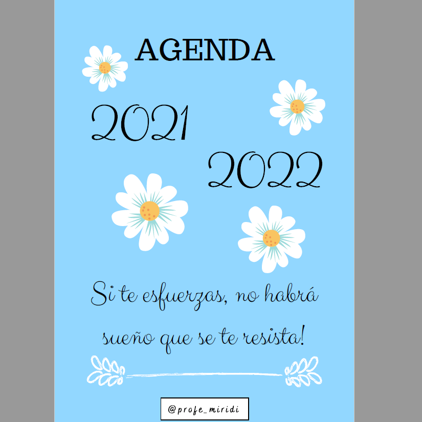 Agenda universitaria día/vista curso 2021-2022 AZUL con detalle de flores