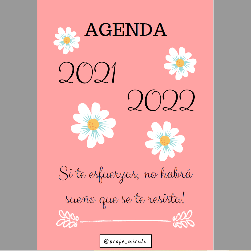 Agenda semana/vista curso 2021-2022 ROJA con detalle de flores